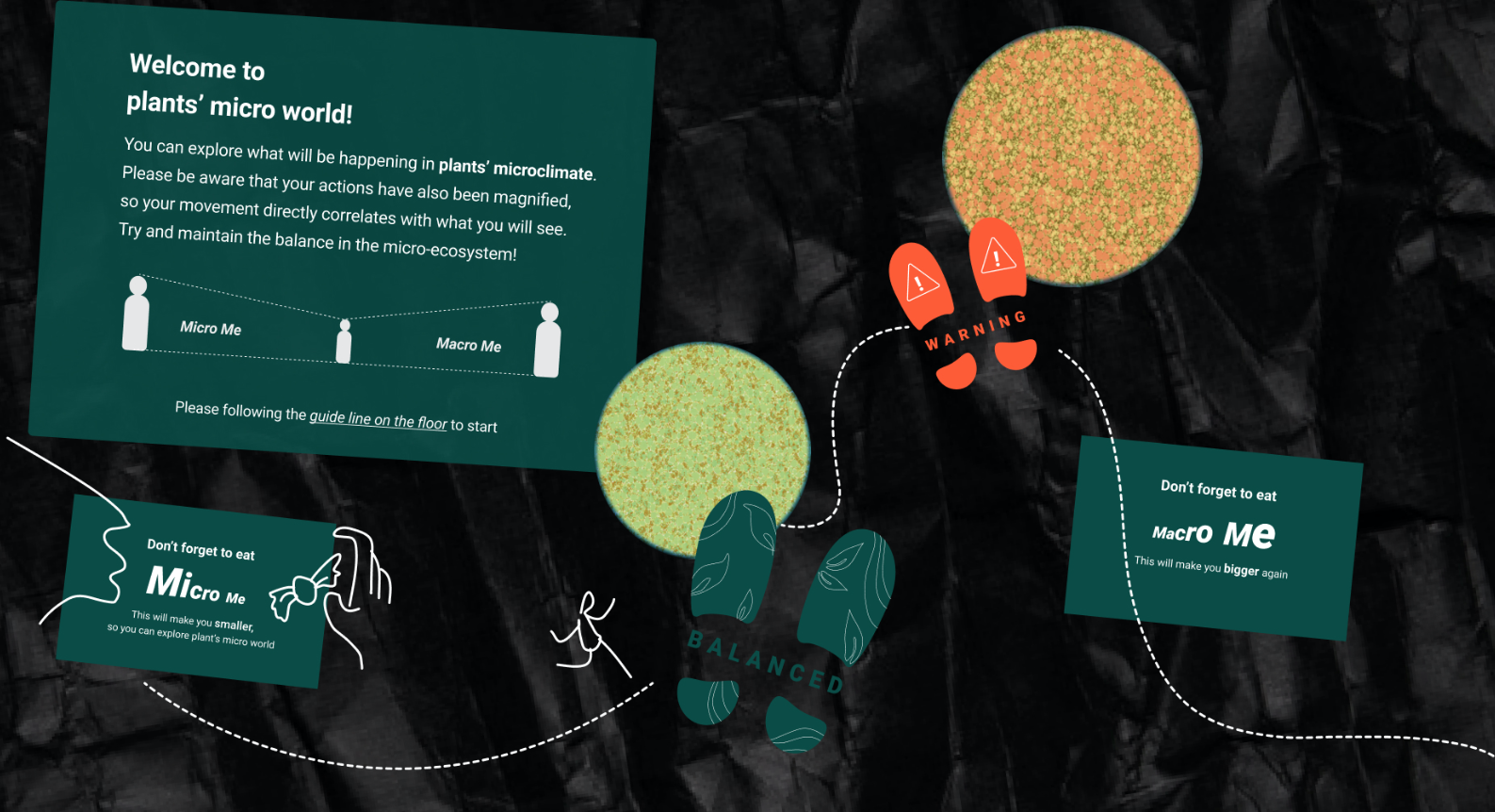 All human actions can affect plant cells inside the exhibition hall. Using a touch-designer and webcam, when people get close to plant cells, it changes from healthy cells to destroyed cells, and it goes back to healthy plant cells again when humans maintain a proper distance from plants. It delivered the message of the importance of a balanced relationship between humans and nature.