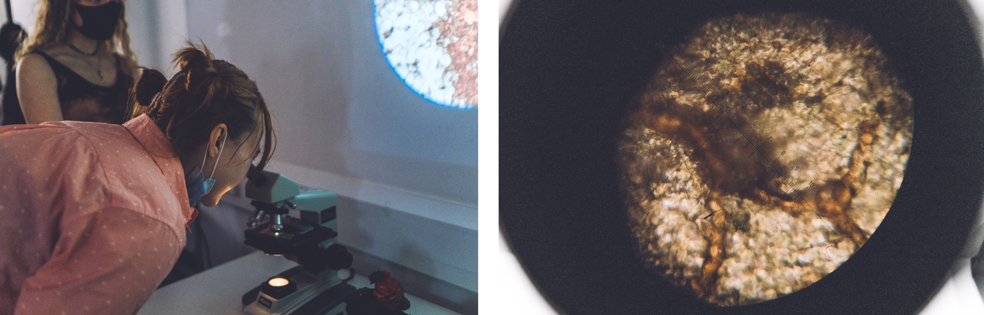 To maximise the project's message, I reversed the size of humans and plants. First, I enlarged the plant's cell size and created a small door people needed to crawl to enter the exhibition hall. It gave an impression of reducing humans size when they pass through the door.